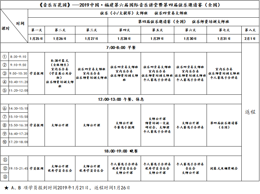 课程时间:1.21报到,8节专业课(分四次,2节/次/连上,不含伴奏费)